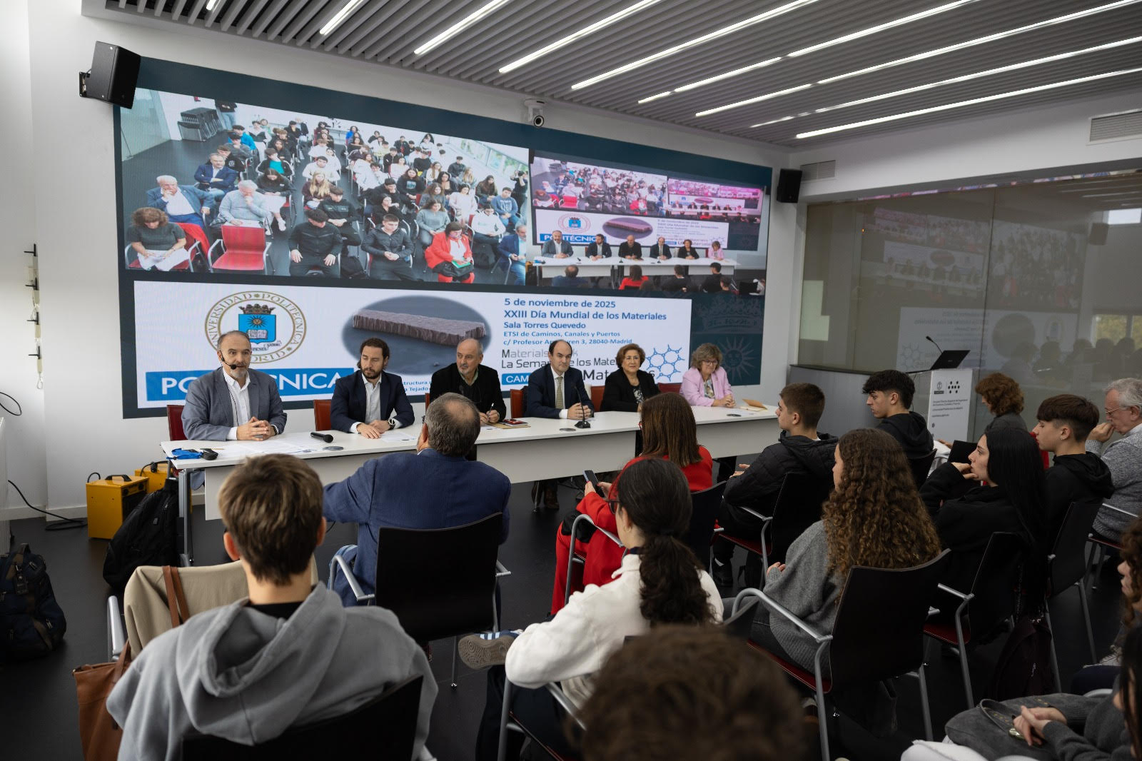 Jornada Universidad Politécnica de Madrid “Materiales: La Revolución Silenciosa de los Materiales”. El 5 de noviembre la ETSI Caminos, Canales y Puertos celebró la Jornada del Día Mundial de los Materiales, La jornada comenzó con una presentación general y la organización de los grupos de visita a los laboratorios. En la apertura, representantes de la Universidad Politécnica de Madrid, de la Comunidad Autónoma de Madrid y de SOCIEMAT resaltaron la importancia de los materiales en la ingeniería. Ángel Ibarra y Teresa Riesgo expusieron los desafíos de los materiales para la energía de fusión y el papel de España en los proyectos internacionales del sector. Marina Villegas presentó las oportunidades de investigación en la Comunidad de Madrid. Tras un espacio de encuentro entre los asistentes, Pedro Serena explicó cómo la nanotecnología impulsa el desarrollo sostenible.