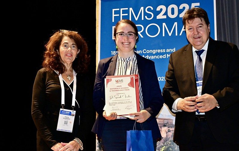 • FEMS Materials Science & Technology Prize WinnerDr. Sarah Fischer, Fraunhofer Institute for Nondestructive Testing IZFP Saarbrücken, Germany “The sound of metamaterials: Engineering characterization methods for metamaterials with tailored sound and vibration properties”