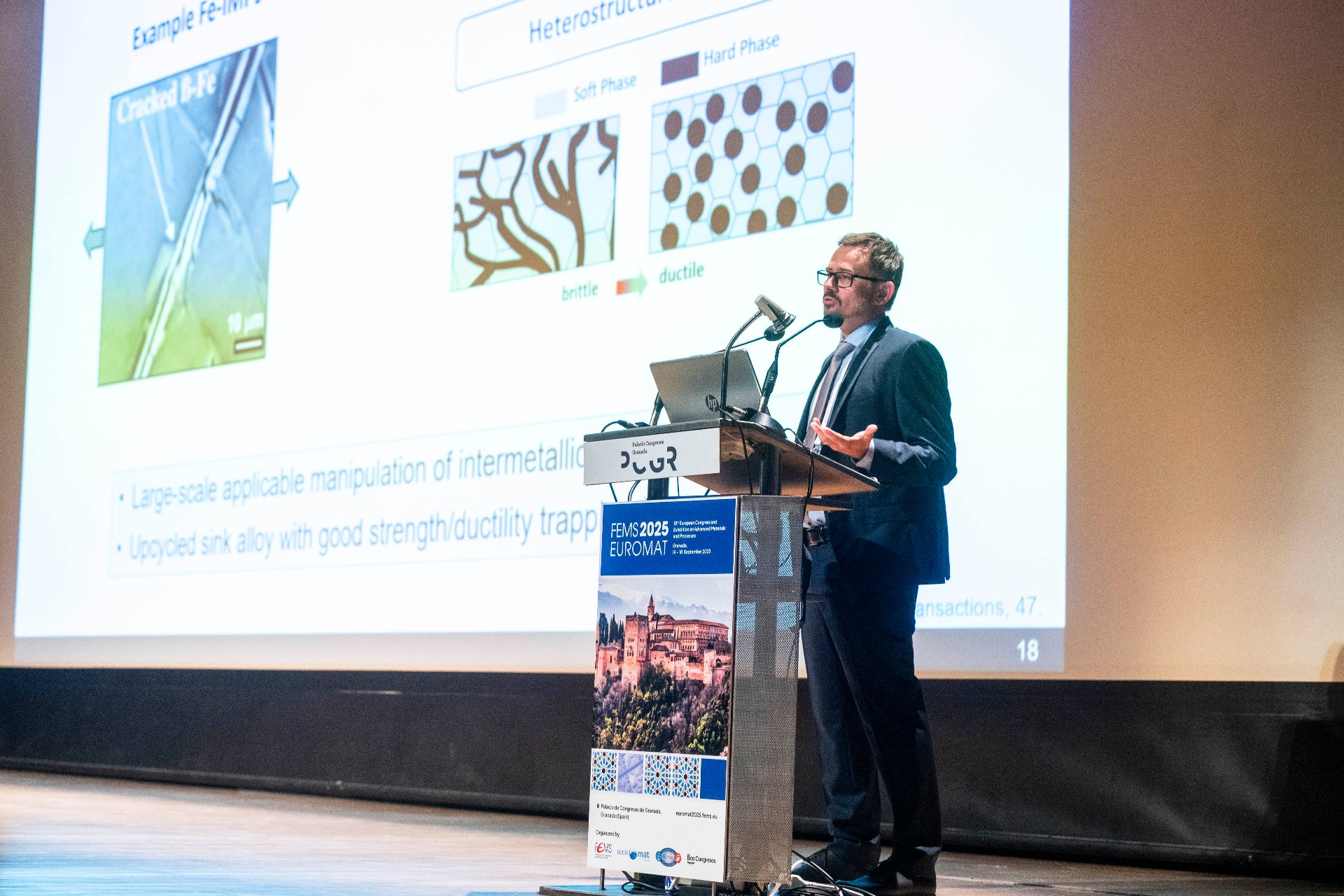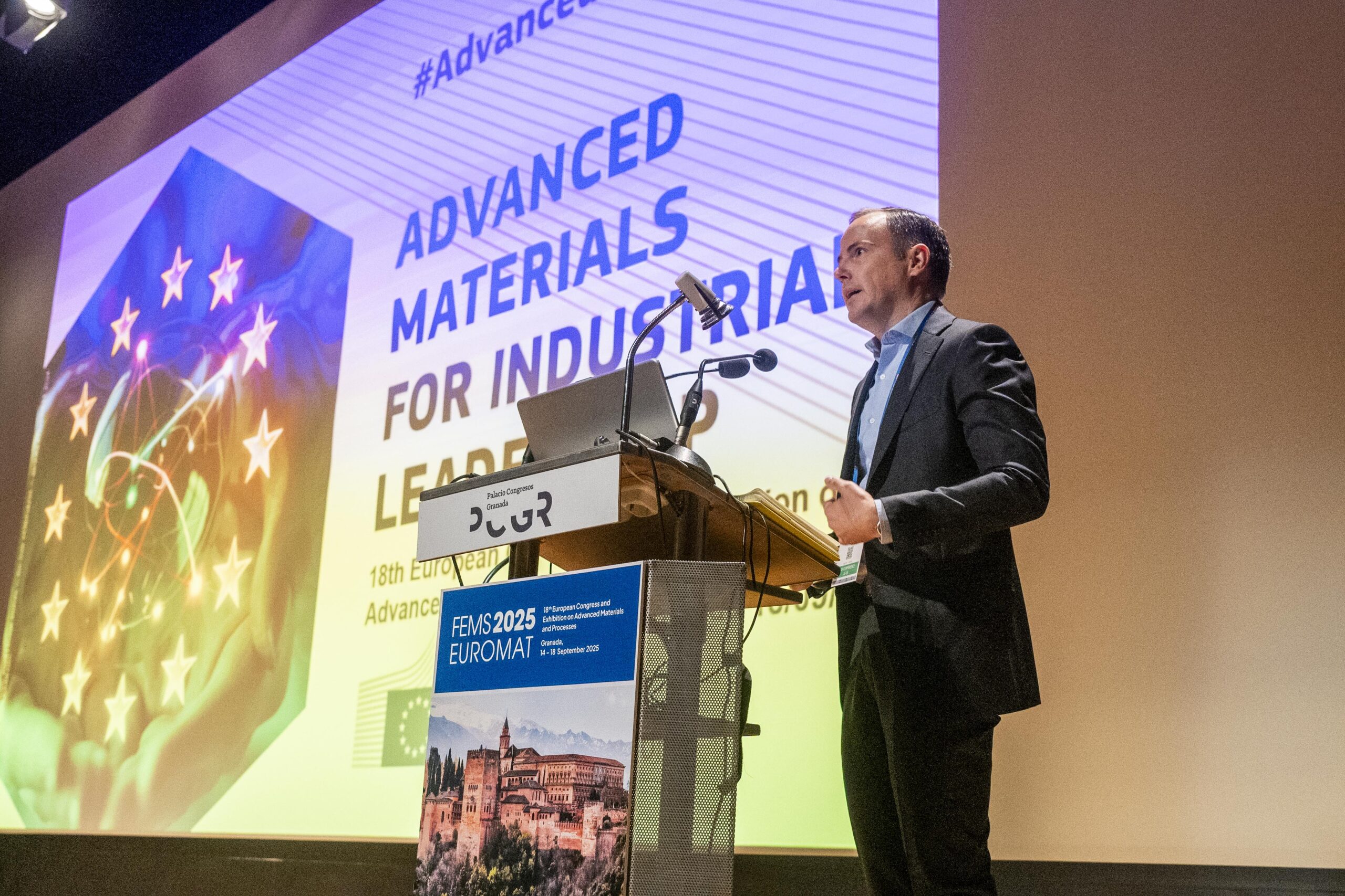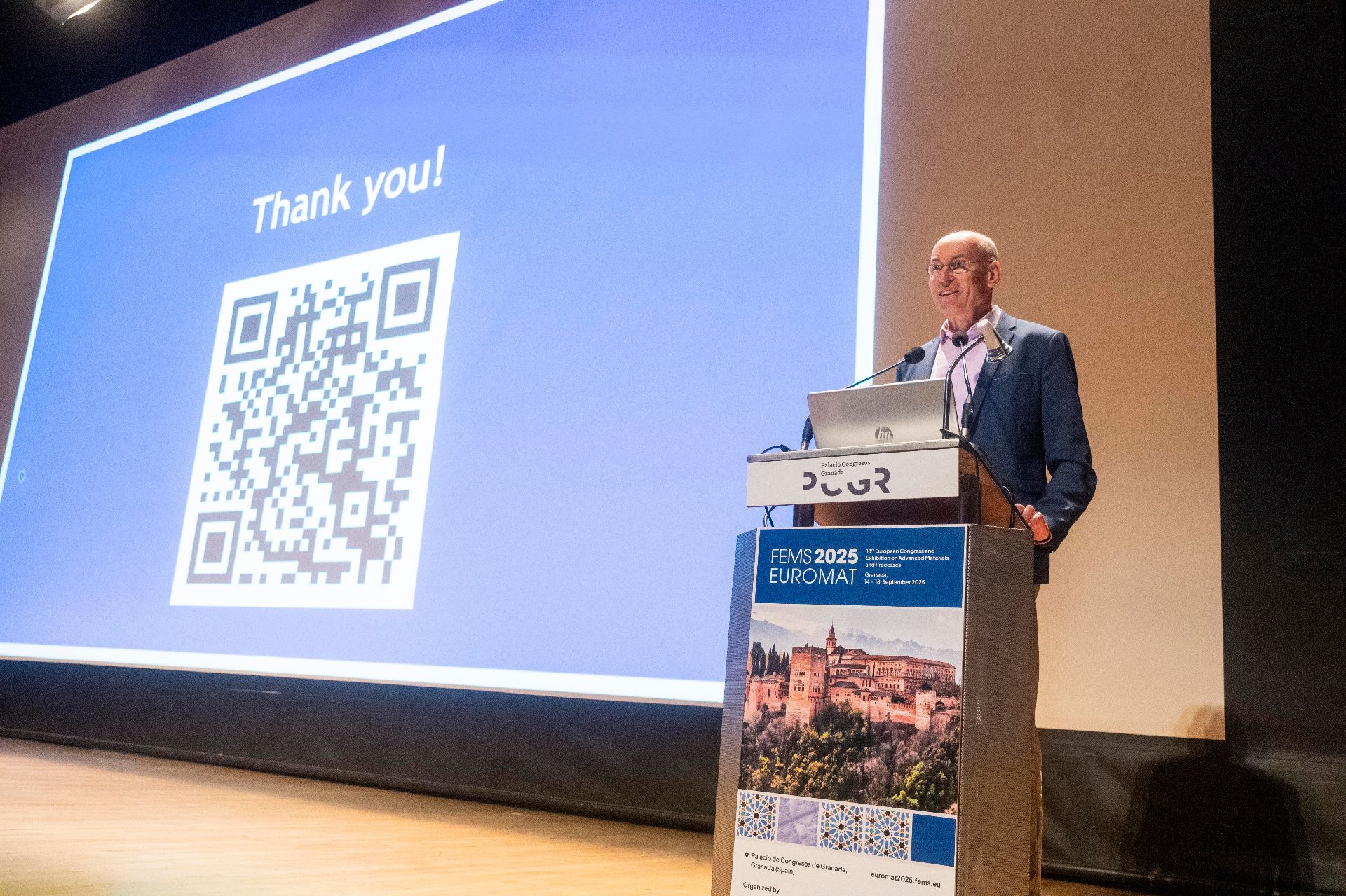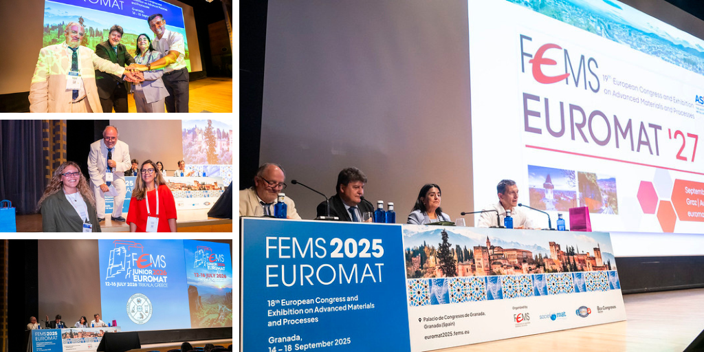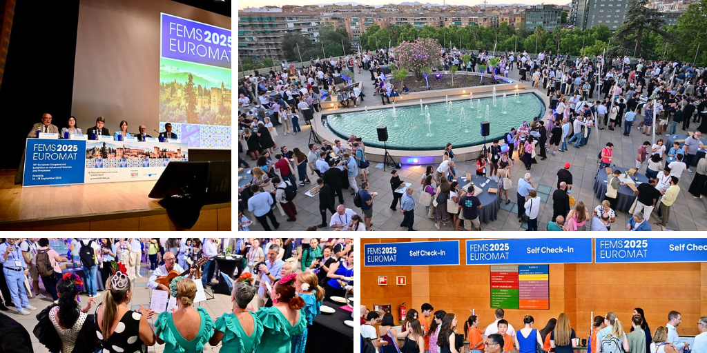 The 18th FEMS EUROMAT Congress took place in Granada from September 15 to 18, bringing together over 1,800 scientists at the Granada Conference Center to discuss the future of advanced materials and processes. Researchers from more than 30 countries presented their work across eight main areas: functional materials, structural materials, processing, characterization and AI, energy and transport, materials for healthcare, education and technology transfer, and materials for sustainability.